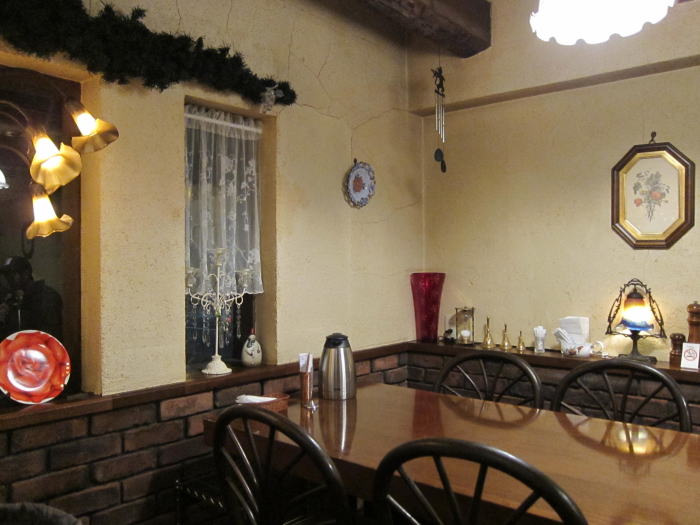 夕食を食べに西区役所すぐそばにある洋食やさんのあいねくらいねはなとむじくさんに行きました。店の中はアンティークに囲まれた懐かしい雰囲気です。昭和に戻ったような気になりました。グラスワインも300円とうれしいお値段です。