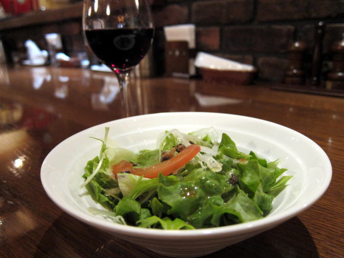 前菜にサラダもついて800円とはとてもお得感があります。グラスワインも350円ととても