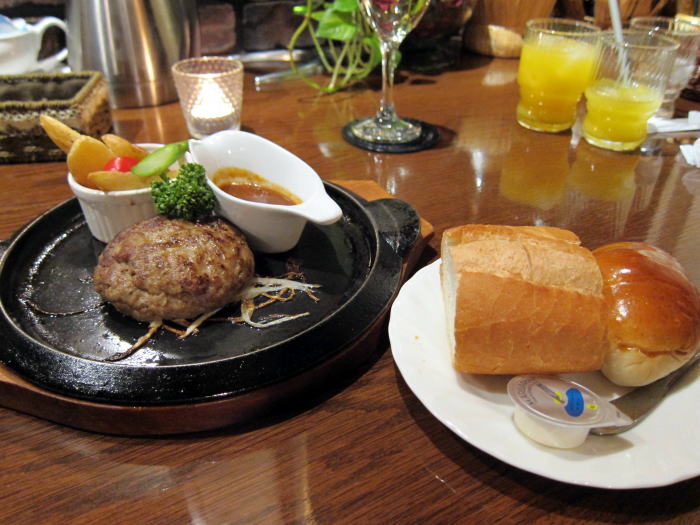 「定番のハンバーグステーキ 150g 700円」サラダにパンがついてうれしい値段です。もちろんとてもおいしいです。
