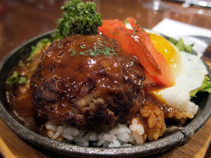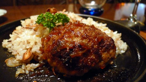 あつあつの鉄板の上には、にんにくたっぷりのガーリックライスとハングがのっています。ハンバーグを切ると肉汁が出て食欲をそそりました。よく炒められたガーリックライスはスパイスがよくきいてにんにくもたっぷりでおいしくて、あっというまに一皿食べてしまいました。このガーリックライスはまた食べたい味ですが。次の日に人に会う用事があるときは心配ななるほどにんにくがたっぷりと入っていました。