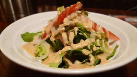 たのんだのは「ハンバーグ100gとガーリックライス」750円です。ハンバーグを待っていると前菜のサラダが運ばれてきました。