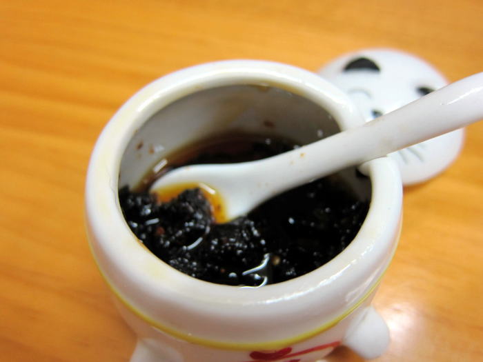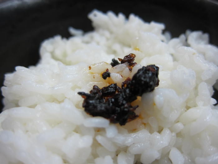 店内で販売もしている食べられるラー油、お店の人にごはんにかけてもおいしいんですよということで試してみました。具材豊富でおいしいラー油です。