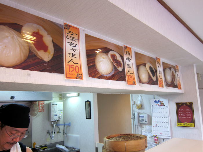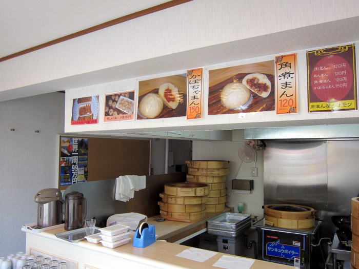 肉まんやシナモンにお昼ごはんを買いにいきました。肉まんをお願いするとせいろにはおいしそうな肉まんがきれいに並べられています。