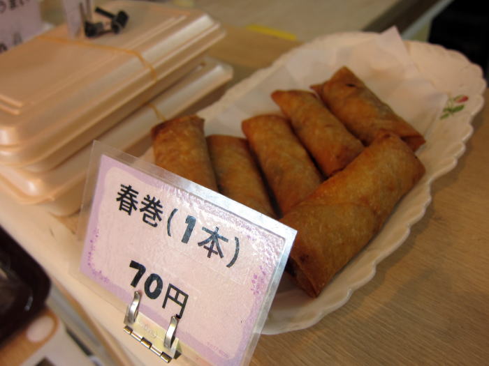 この日は、春巻を一本買いました。中の餡がたっぷりで表面のかりっとあがったおいしい春巻です。