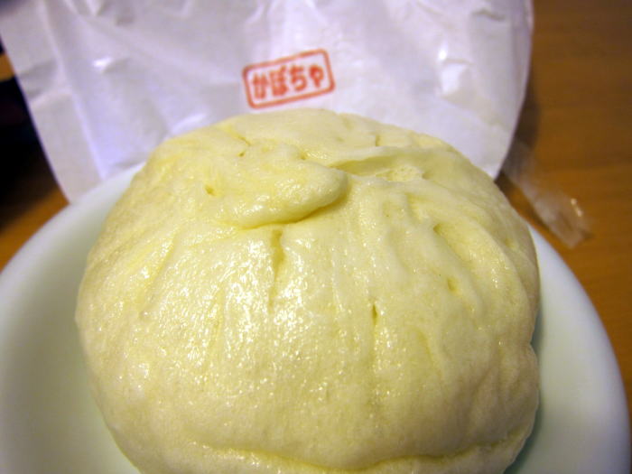 かぼちゃまん150円 中をあけるとかぼちゃの餡がたっぷりと詰まっています。