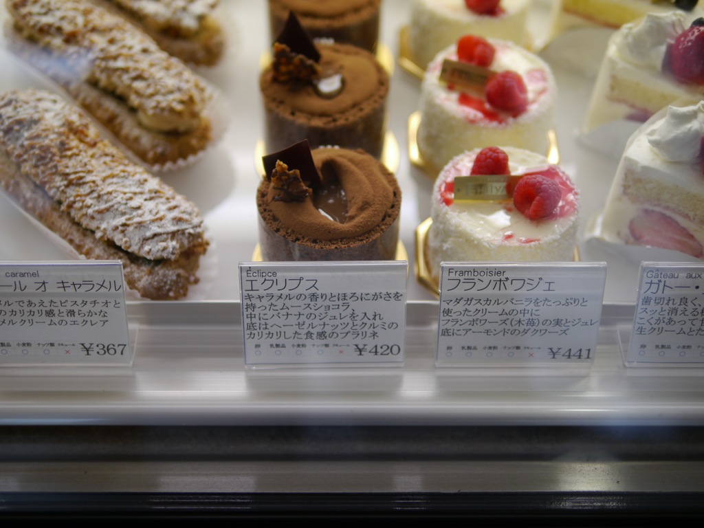 ショーケースのケーキを見ながら10分ほど迷ったあげく、予約したのはエクリプス、キャラメルの香りとほろにがさを持ったムースショコラ、中にはバナナのジュレ、底はヘーゼルナッツとクルミのかりかりとした食感のプラリネとあり、赤ワインにあいそうな大人なケーキに、いちごのケーキがいいのではといろいろいいましたが、エクリプスに決定となりました。どんな誕生ケーキになるのかお楽しみ。