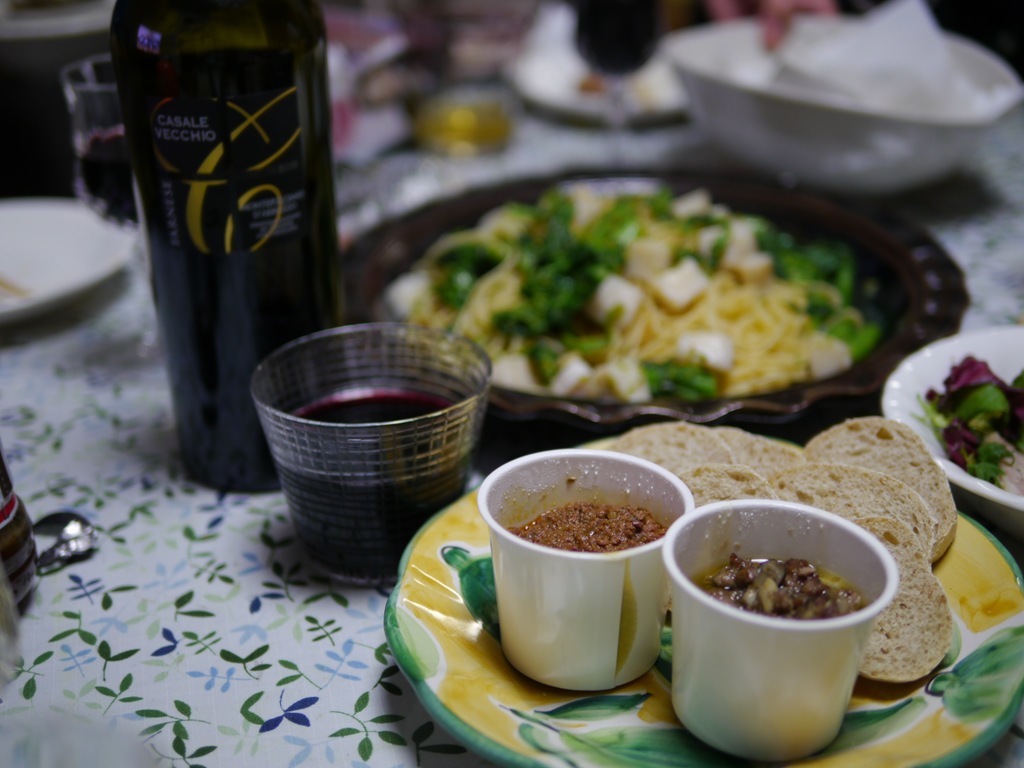 追加でテイクアウトした鶏レバと羊をフィアンコ自家製パンにのせていただきます。合わせたのはイタリアワイン、カサーレヴェッキオおいしい組み合わせでした。