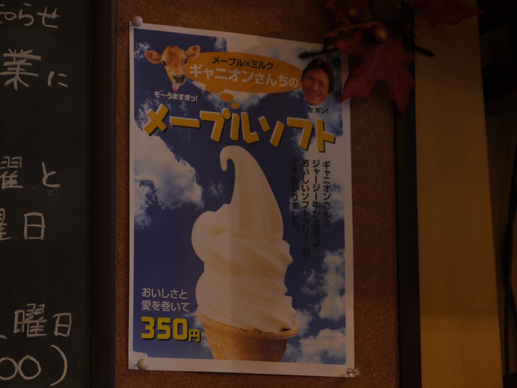 この日のお目当てはジャージー牛に、たっぷりのメープルシロップを混ぜて作っている何とも贅沢なメープルソフトクリーム、カップとコーンを選べます。