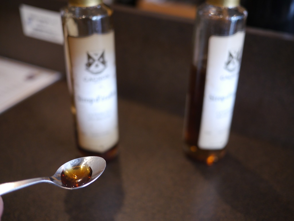カナダケベック州のウィスキーをおいしくいただきながら、メープルシロップに囲まれ、ギャニオンさんのわかりやすいフランス語の説明を聞いて、すっかりメープルシロップファンになりました。
