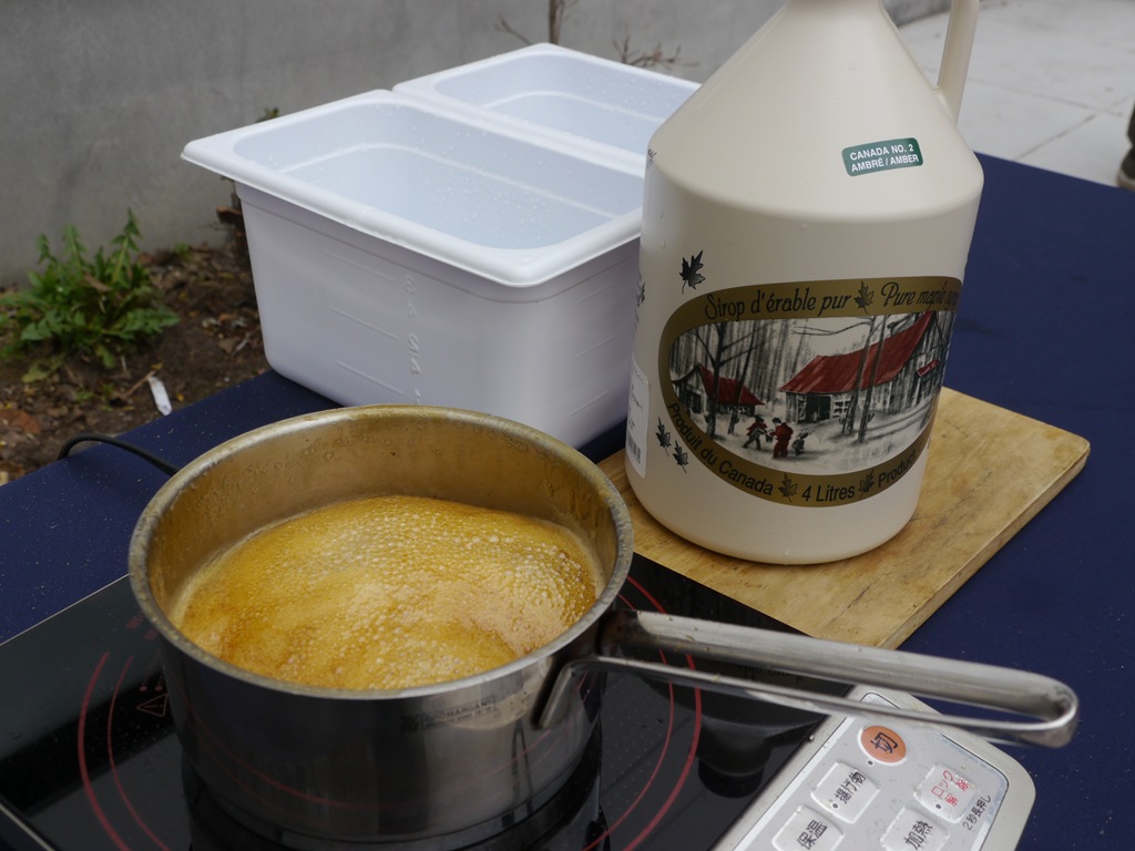 洋菓子のべんべやでギャニオン代表のカナダ人ギャニオンマークさん自らつくる、カナダケベック州の春の味わい、メープルトフィーメイキングに参加しました。