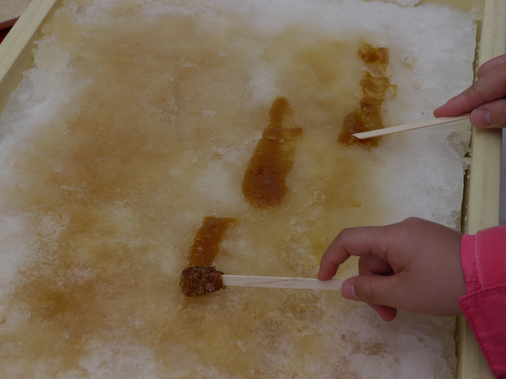 木のへらをまわすとからまって、水飴のよう口の中にいれると、すぐにとろけます。とても上品な甘さ、カナダケベックの春の味、おいしくいただきました。