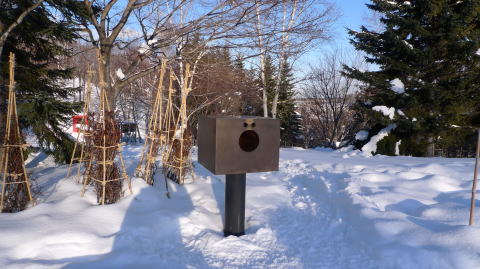 かんじきをはいて、自然の中、彫刻をみてまわるのは楽しい体験
