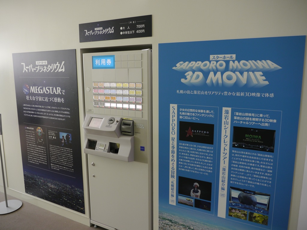山頂駅には、プラネタリウムが設置されていました。初回は12時ということで、券を買って待ちます。大人700円です。スーパープラネタリウム、世界的に有名な大平貴之さんの開発したメガスターの映像を見ることができます。