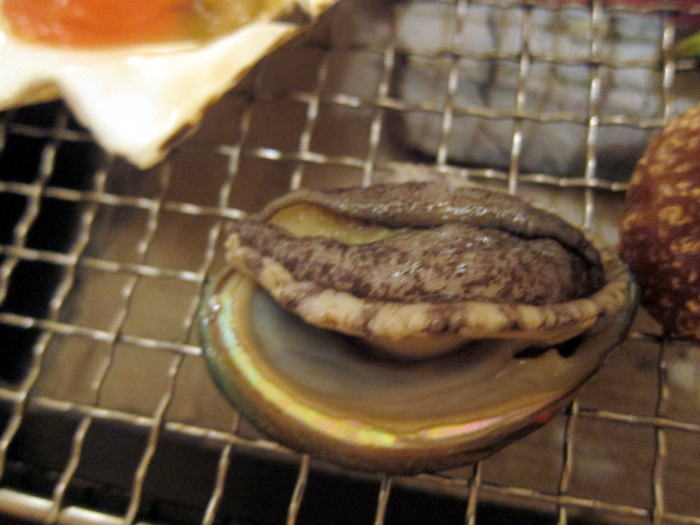 八雲の鮑を焼きました。かなり鮮度が高くて囲炉裏の上で10分以上、動いていました。きもと一緒にいただかせていただきました。