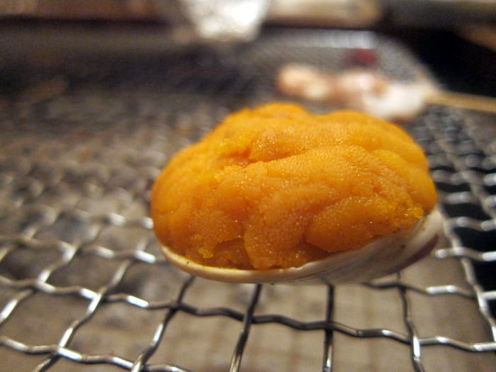 焼き物の中でアルミに包まれていたのがはまぐりの貝殻にたっぷりと盛られた蒸しうにです。なかなか美味しくてお酒がすすみました。