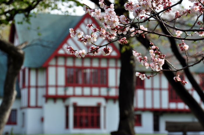 昭和11年に三井財閥の迎賓館として建築された洋館です。広い庭はきれいに整備されていて、春には桜、秋には紅葉が楽しめます。伺ったのは平成22年5月10日夕方です。