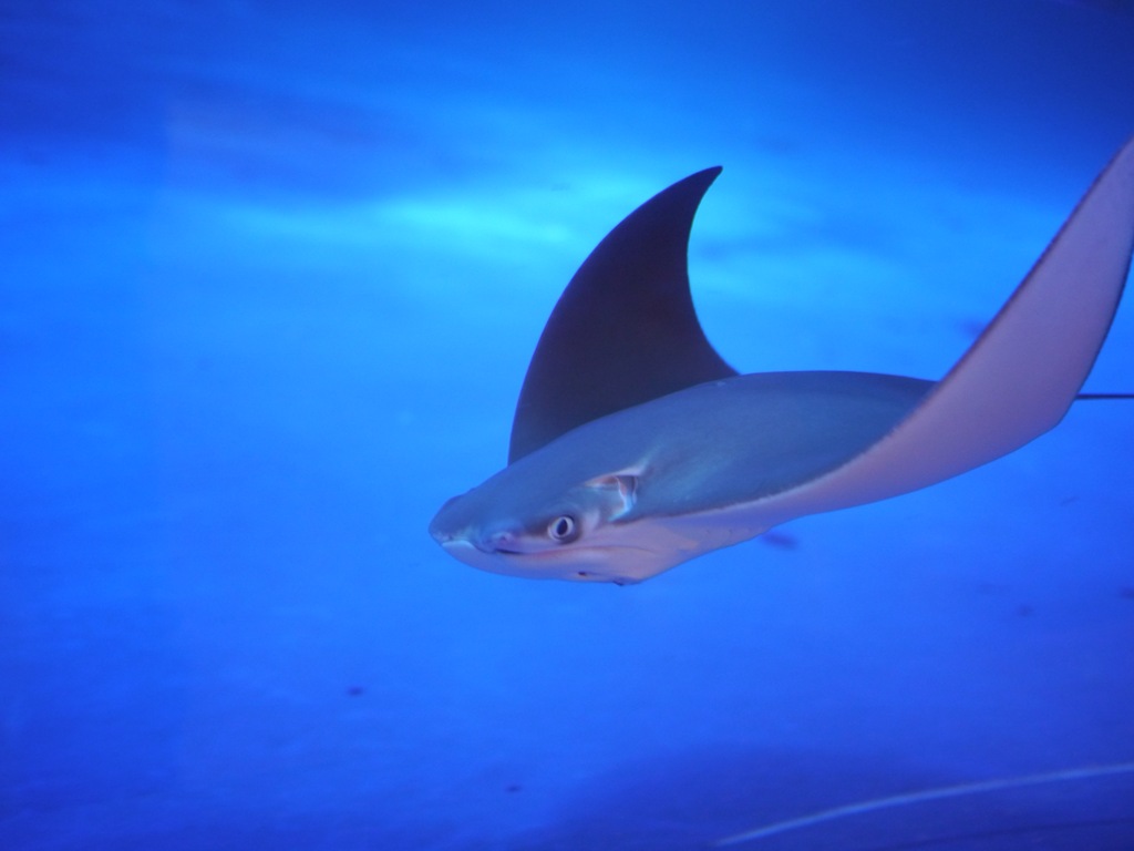2011年9月17日に小樽水族館に仲間入したウシバナトビエイが元気に泳いでいます。