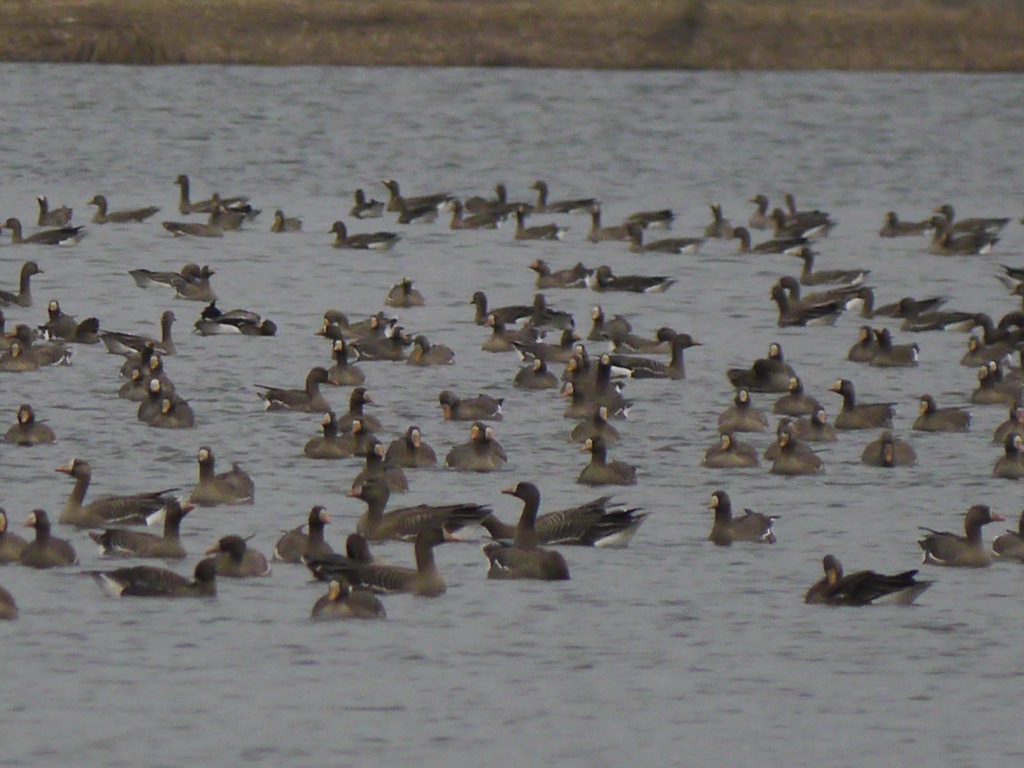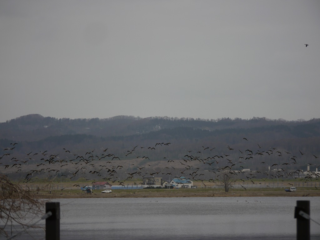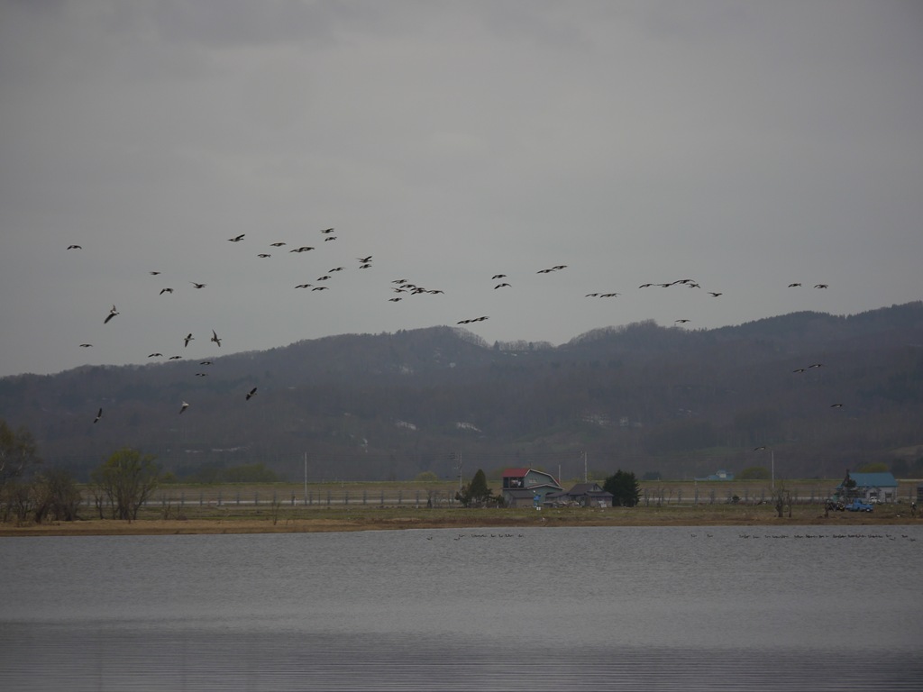ちょうど、鴨たちが沼に休みに戻ってきている途中でたくさんの鴨の姿があります。