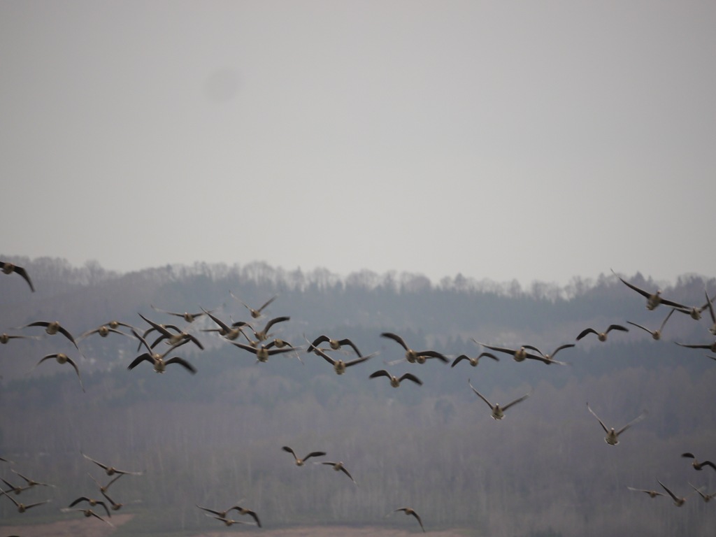 帰り際、羽ばたく音がして振り返ると、鴨たちが一斉に飛び立ちました。迫力のある音と光景