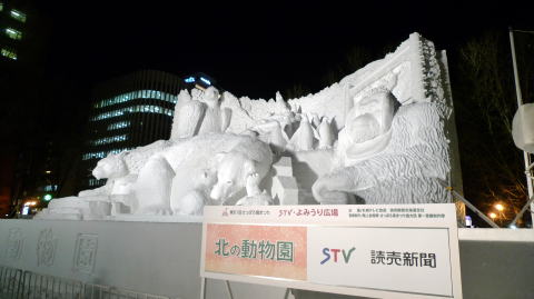 4丁目の北の動物園 円山と旭山の2つの動物園の人気者たちが大雪像になっています。