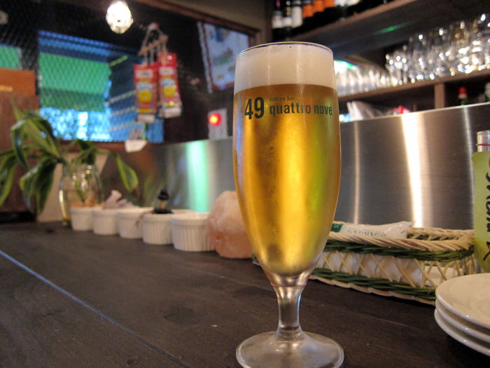 ビールの次にワインをいただこうとしたら、「限定のサングリアがあります」ということを聞きました、聞くとスタッフさんの余市の実家果樹園で収穫したプルーンを使ったサングリアということです。イタリアのフルーティな白ワインで割ったプルーンはすっきりとした味わいで、身体にしみこむような感じを受けました。伺った日は昼間がとても暑く汗をかなりかきましたが、ミネラルの補給にぴったりです。プルーンなので鉄分の補給に良いと思いました。