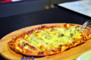 ピザをたのみました。飲み過ぎての訪問で丁寧につくってもらったのですが、あっというまに食べてしまいました。お酒を飲んだ後にもよくあうパリッとしたおいしいピザでした。