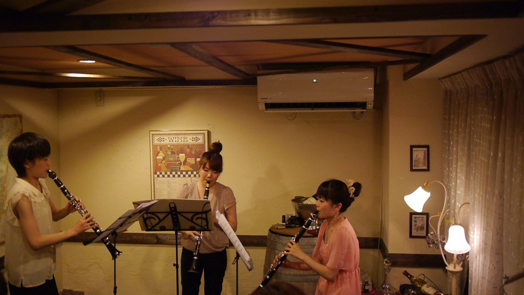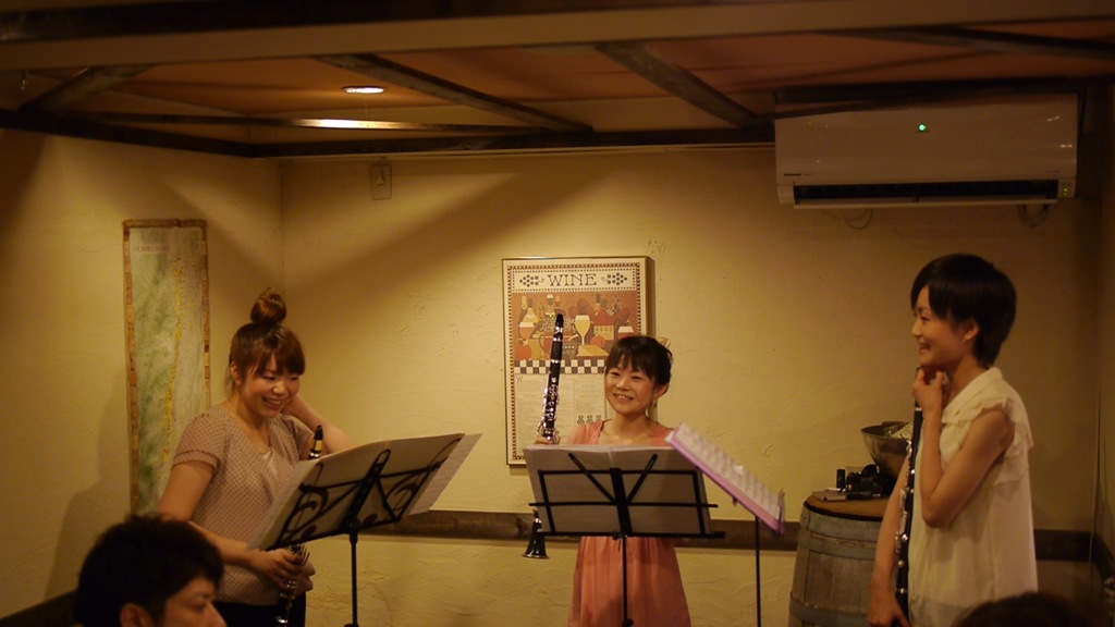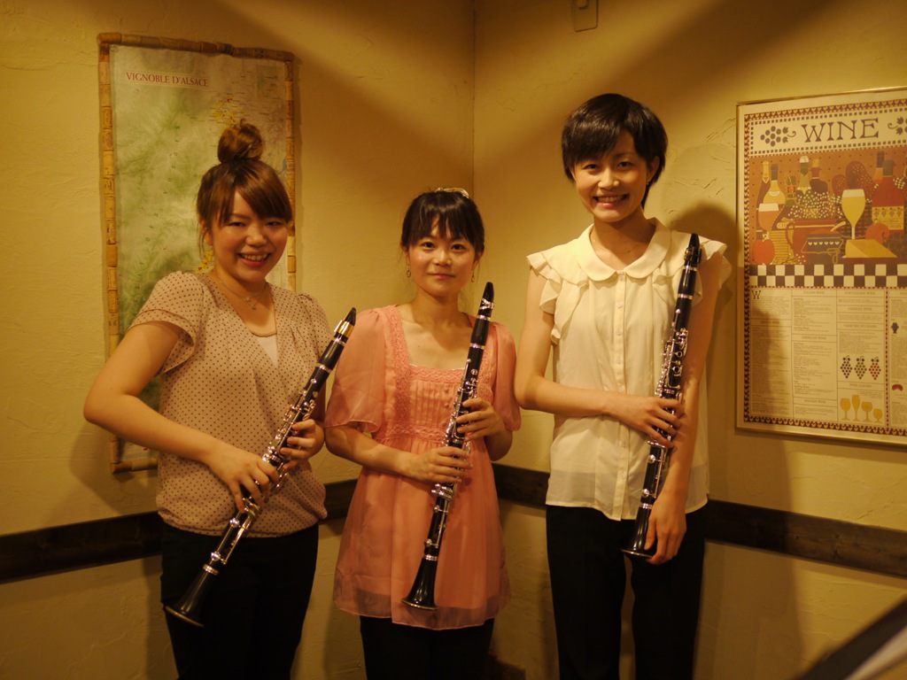 狩原枝里子さん、小松崎綠さん、田中莉世さん クラリネット3人の楽しいお話とともに、素敵な演奏が始まりました。演奏は、とても素晴らしいの一言、私のように、音楽に詳しくない人にも大丈夫なわかりやすい内容です。