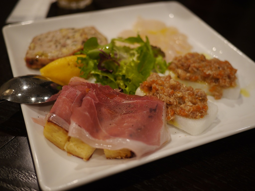 ディナータイムの電話予約時に前菜の盛り合わせ食べたいと言うとサービスがあります。