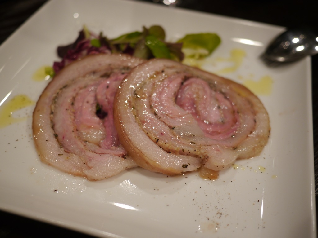 ポルケッタ お持ち帰りで食べたことがありますが、とてもおいしい豚肉の香草焼き、この日はちょうどできたてのタイミングでいただくことになりました。