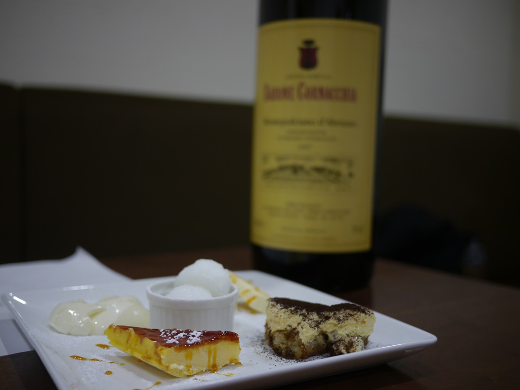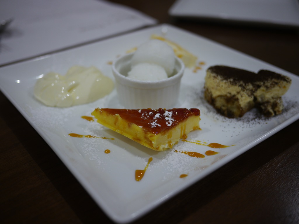 前菜の盛り合わせは豪華に5点盛りをいただきました。ティラミス、カタラーナ、いちごのセミブレッド、プディーノ、オレンジとレモンのソルベ