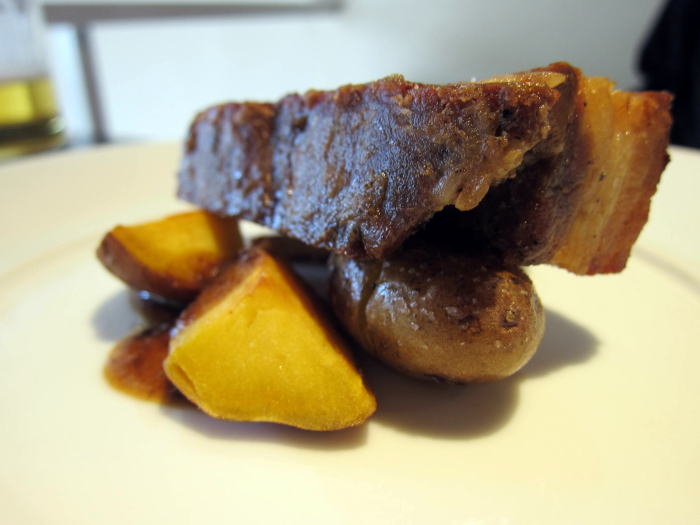 道産三元豚バラ肉のロースト メインは4品から選べました。友人は豚バラ肉