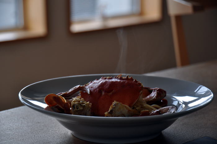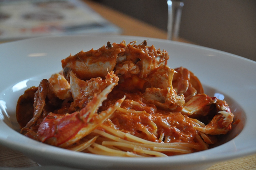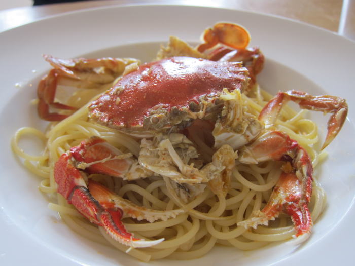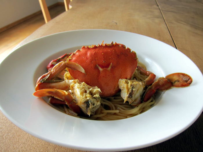 ヘラガニの辛口パスタも、ヘラガニの風味をしっかりと味わえておすすめです。
