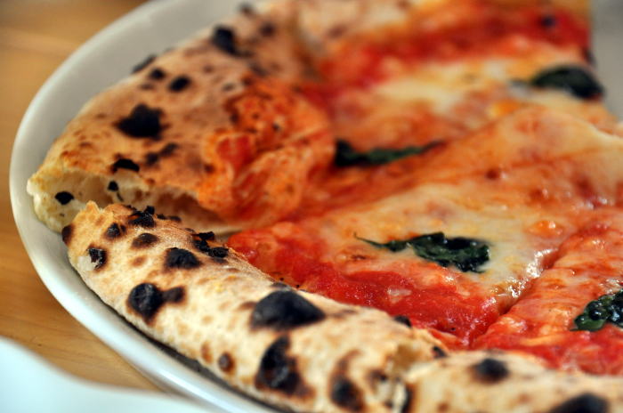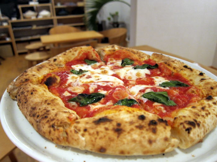 マルゲリータピザ 天然酵母で作った生地はもちもち感がよくて専用釜での焼き加減がよくとてもおいしいピザです。