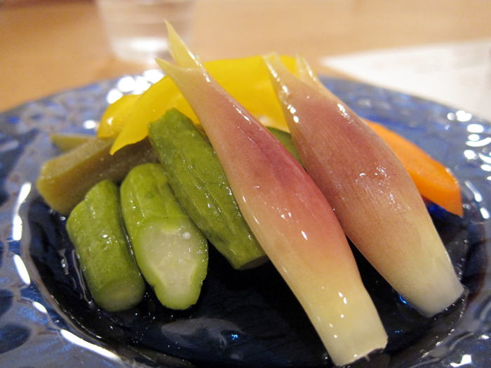 自家製ピクルス450円 さすが、野菜の豊富な余市のピクルスという食べごたえのあるピクルスで、みょうがやおくらなどがしっかりとピクルスしていてとてもおいしかったです。狸小路十丁目のかね松でもたべられるということです。