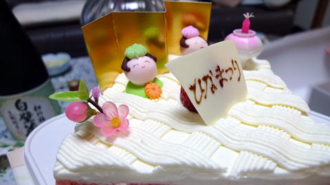 うれしいことにヒナケーキのぼんぼりには小さなろーそくがついていて、娘も大満足でした。