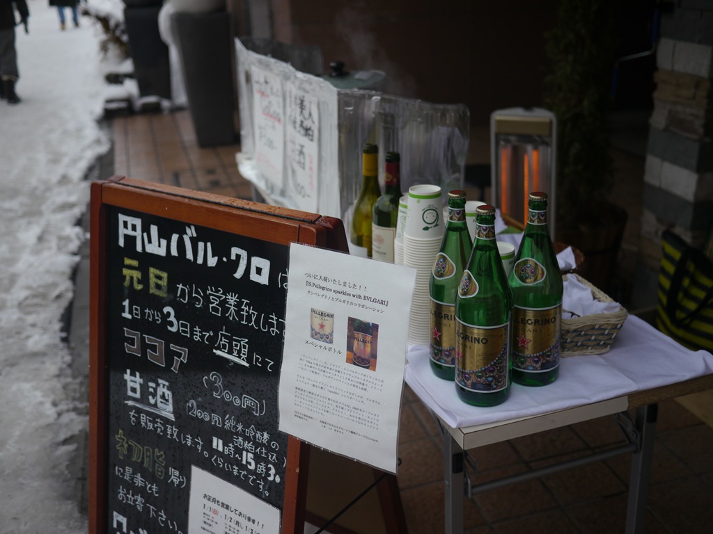 昨年いただいて、とてもおいしかった、円山バル・クロのお正月の出店、北海道神宮の途中で寄りました。今年は、昼のロクがあいているので、ラーメンを食べようとしたのですが、ちょうど満席で入れません。外で待っている間、少しいただきました。
