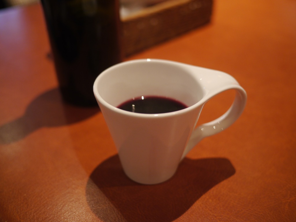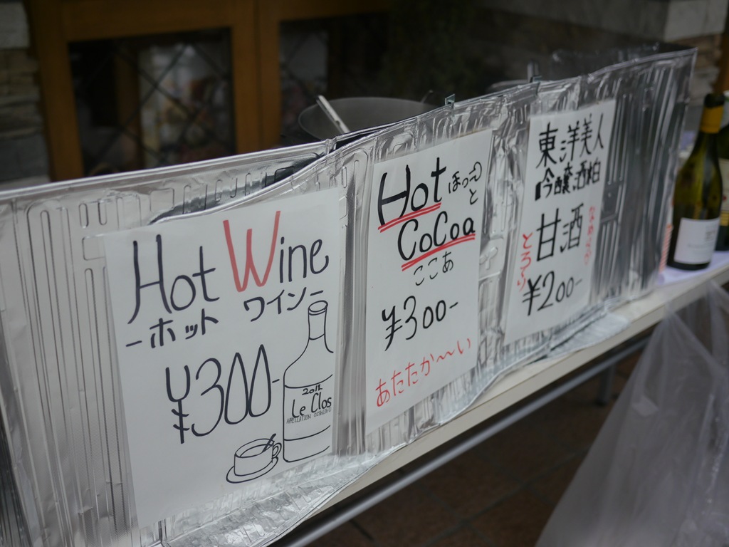 10分ほど待って、お店に入ることができました。ラーメンができるまでいただいたのはホットワイン、ブルゴーニュの赤を使ったおいしいホットワインです。