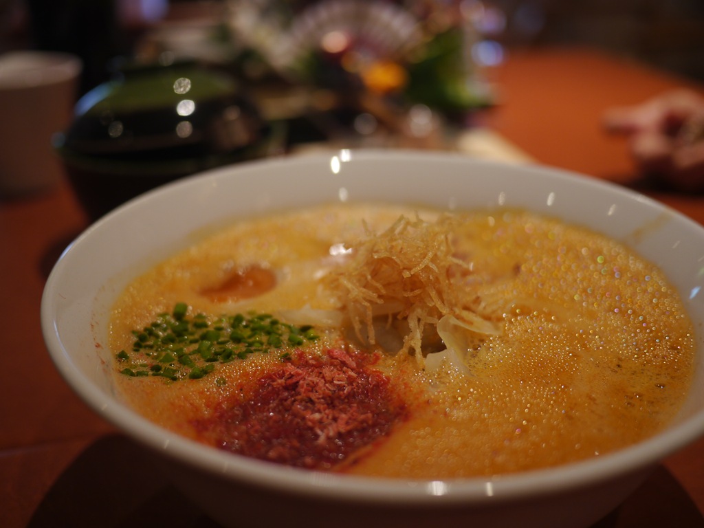 赤いラーメン あいかわらず海老の味がとても濃厚のフレンチの技がつまった、こだわりのラーメン