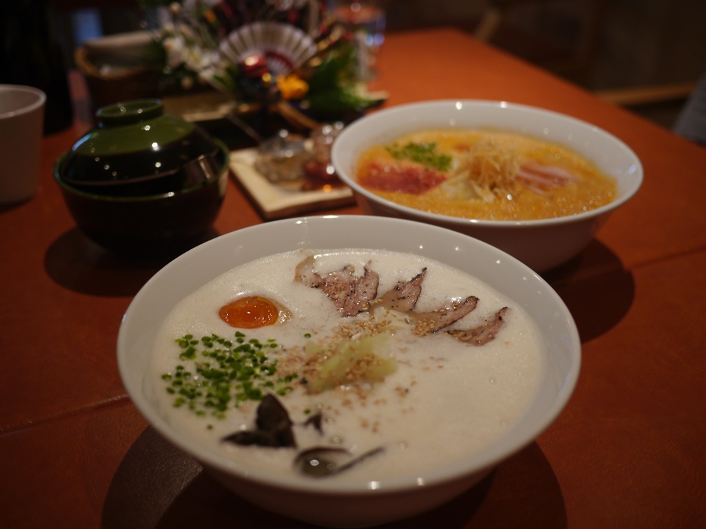 お正月、それも北海道神宮の初詣の途中と言うこともあり、この日たのんだのは定番の赤いラーメンと白いラーメン、そのままおめでたい紅白ラーメンとなりました。