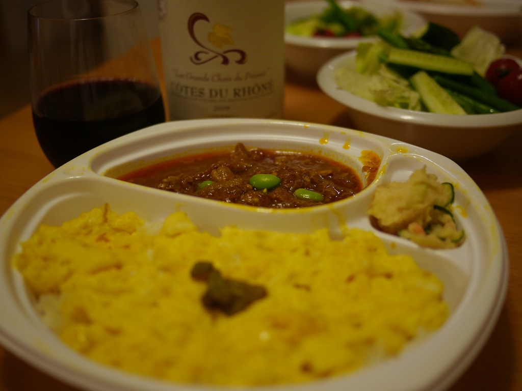 夕食にお弁当を買って帰ることになり、おいしいカレーが食べたくて、お昼に電話で予約して、夕ご飯時に取りにいきました。開店すぐの時間でしたが、すでにお店の中はお客さんが一杯、テイクアウトは厨房の余裕が必要なのでやはり、早めの予約が正解でした。
