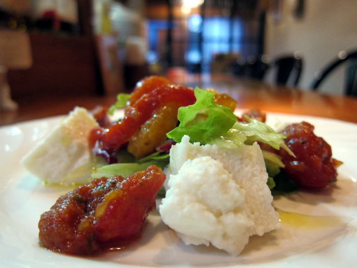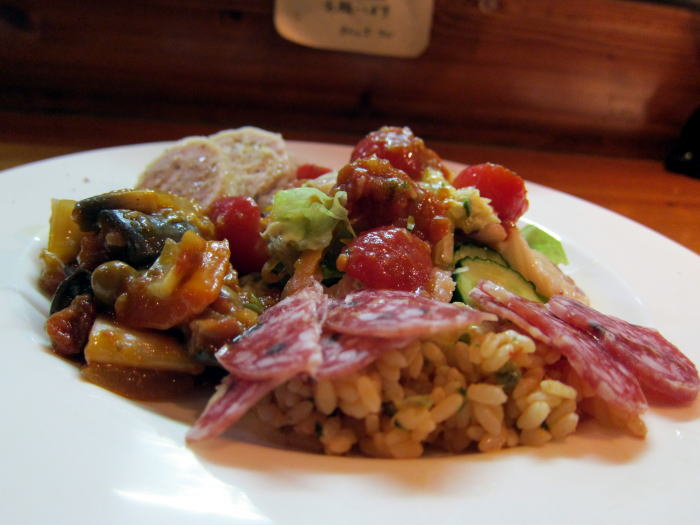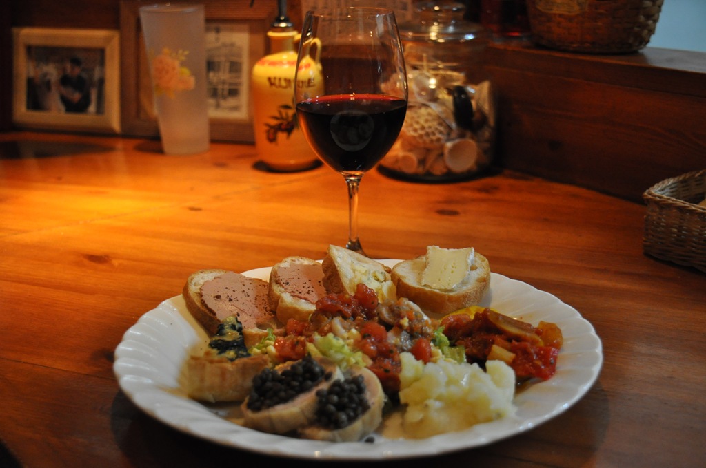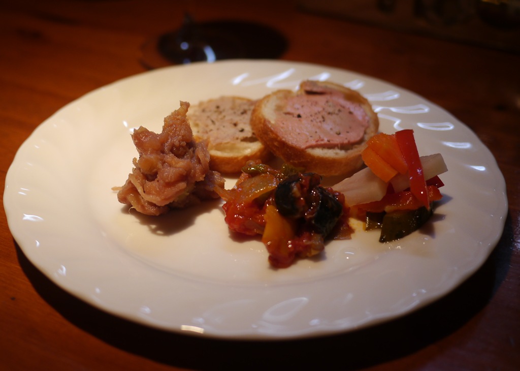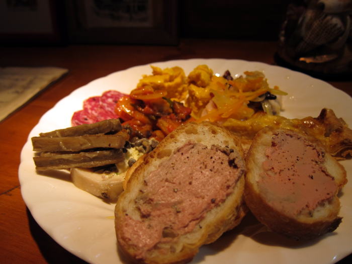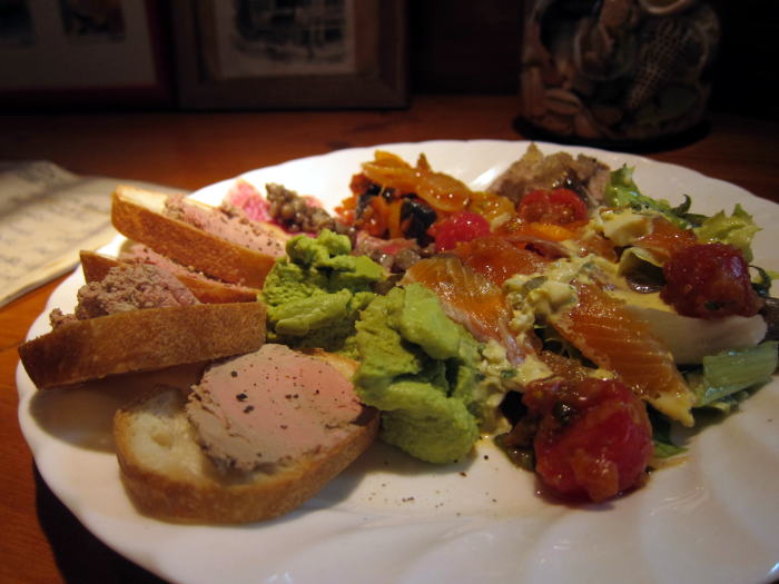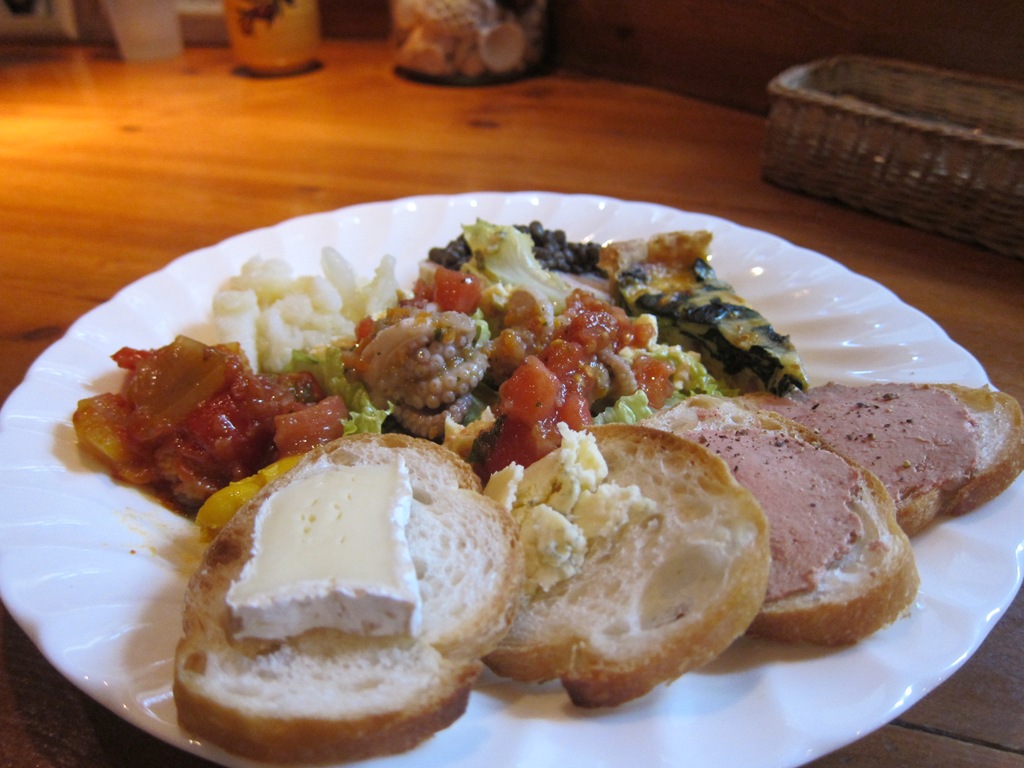 この日の前菜盛り合わせ、キッシュやチーズと、いつもながら豪華な一皿です。