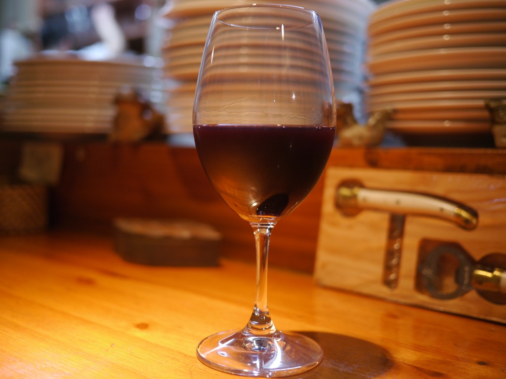 運ばれたお皿をみて、赤ワインが欲しくなりました。銘柄は忘れてしまいましたが、グラスワインでいただきました。しっかりとしたおいしいワインです。飲み口の良いワインとおいしい総菜をいただいて赤ワインがすすみます。おかわりをお願いしました。