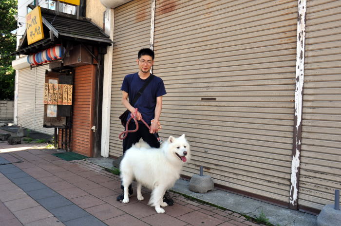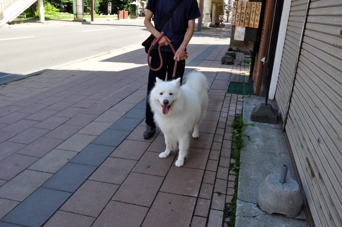 次の日の朝、仕事に向かう途中、NARUのマスターの散歩に遭遇しました。サモエド犬の雪男くんで琴似神社のマスコット犬です。近くでみるとかなり大きくて、ふわふわの真っ白い毛がまるでぬいぐるみのようです。