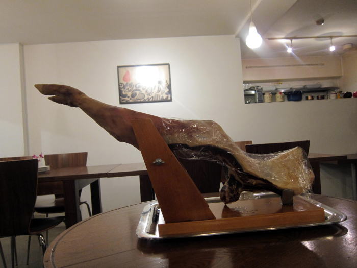 気になったのは席の隣にあったハモンセラーノです。これからいくお店を予約していたので、友人が到着してお店をでました。今度食べてみたいと思いました。
