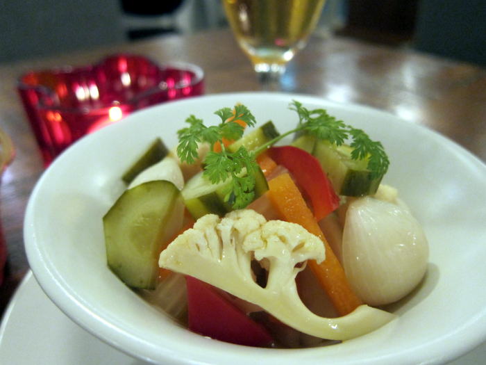 何か軽く1品とお願いしたのは、自家製ピクルス 400円です。たまねぎのしゃきしゃき感が良く、色とりどりの野菜が楽しい一皿でした。