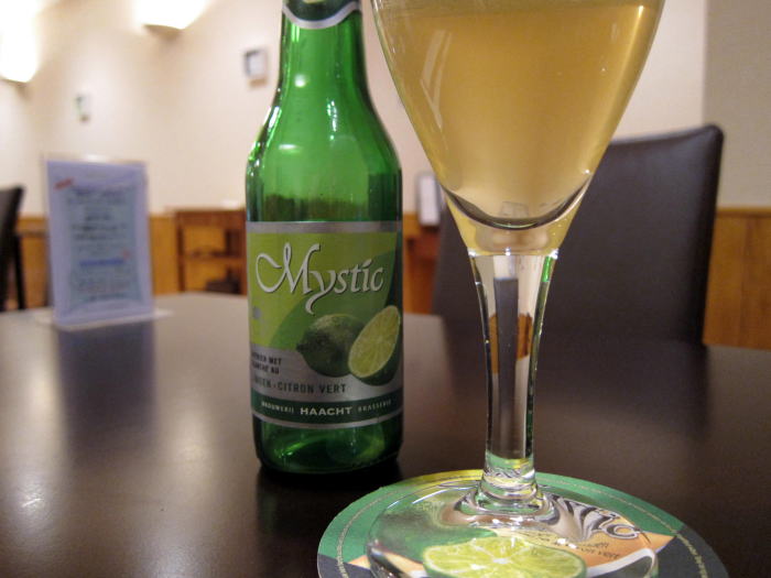 ベルギービールは10種類以上あって迷いましたが。さっぱりとしたのが飲みたくてライムの香りの「ミステックライム 700円」をお願いしました。