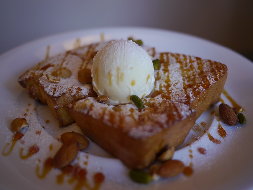 フレンチトースト 420円 お昼過ぎに行きましたが、一日三食限定ということで、デザートにまだありますかと聞くと、ありますよということでさっそくお願いしました。20分くらいかかりますと言われましたが、注文を受けてから焼くので焼きたてのおいしさと、冷たいアイスがいっぺんに味わえる贅沢なデザートです。
