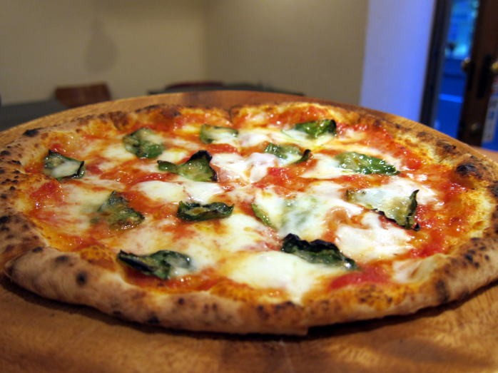 まずは、マルゲリータ到着です。見るからに美しく、食べておいしいピザです。