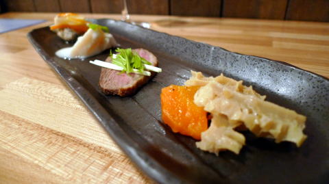 前菜は3種盛りでした。手前のトリッパの食感もよく、真ん中のかも肉の味付けは特に好きな味でした。