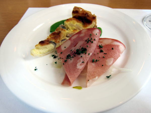 日曜のランチに道立近代美術館と西18丁目駅の間にある、タントタボレッテに行きました。たのんだのは1350円のスペシャルランチです。まずは前菜が運ばれてきました。キッシュもハム、しゃきしゃきのタマネギスライスが爽やかでおいしい一皿です。